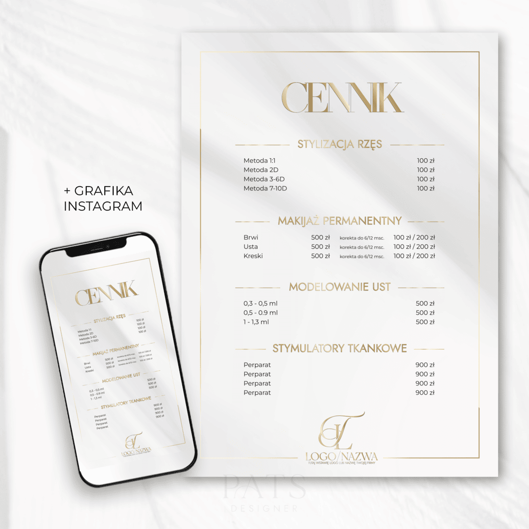 Gotowy projekt cennika do personalizacji Twoim logo i danymi firmy.