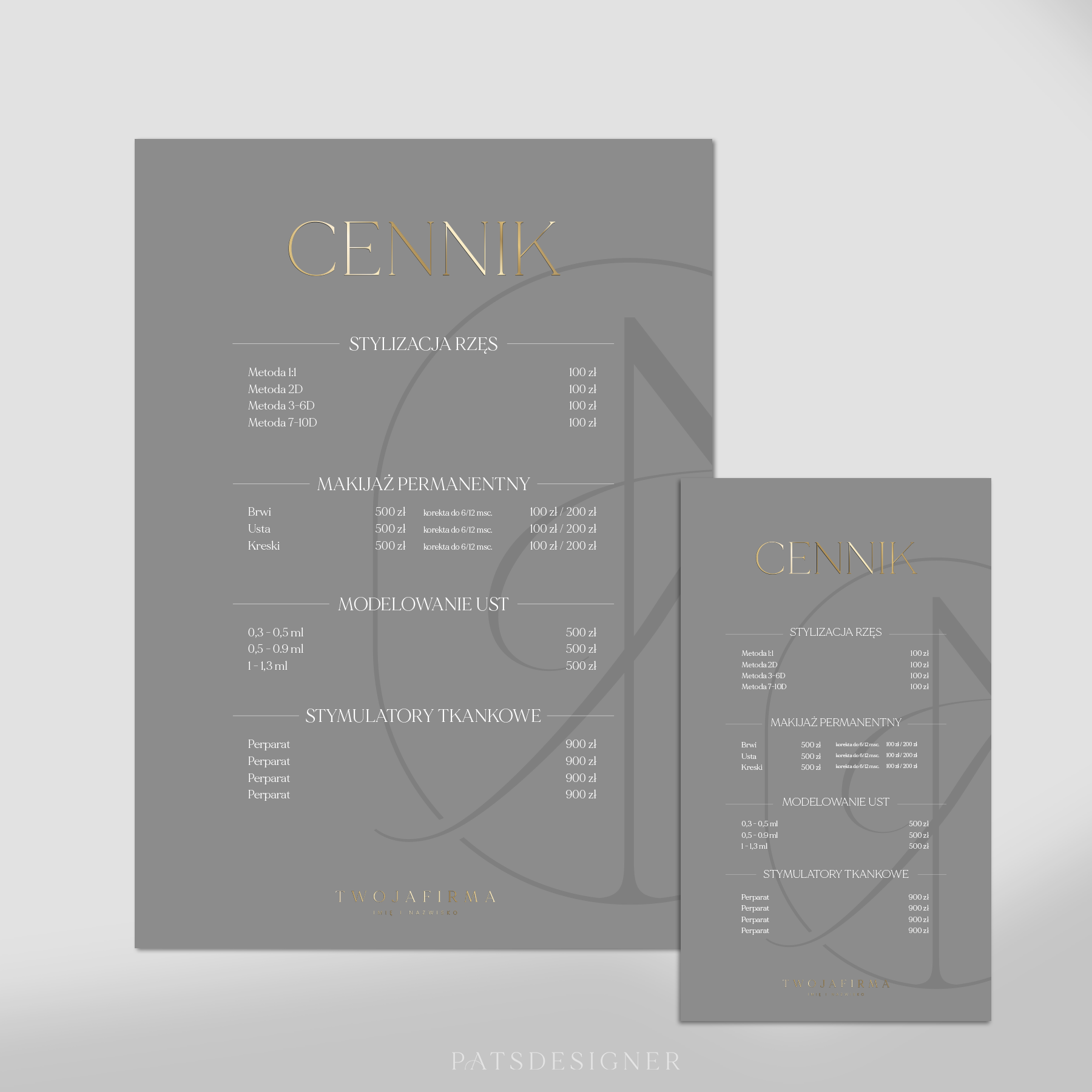 Gotowy projekt cennika do personalizacji Twoim logo i danymi firmy.