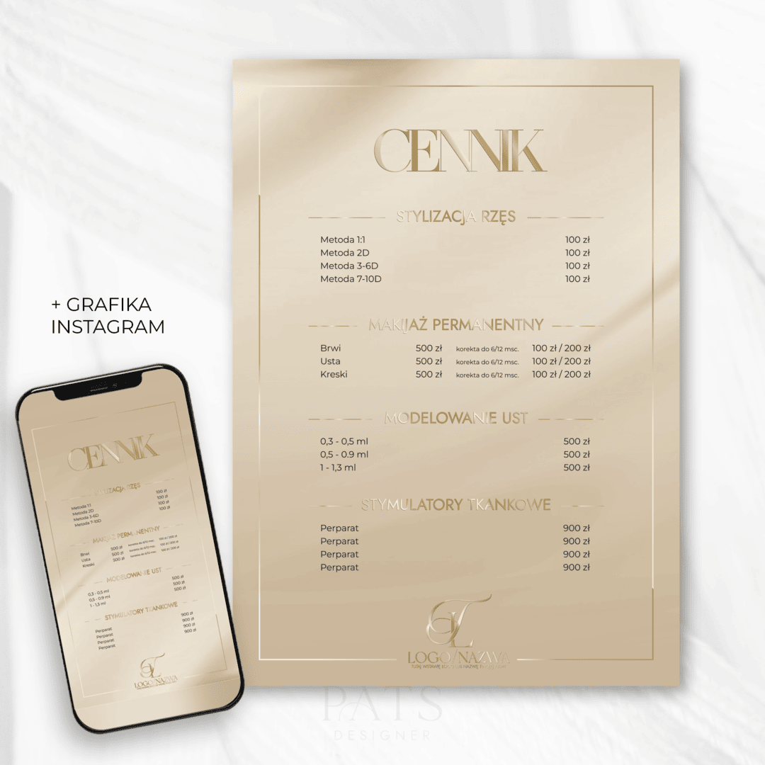 Gotowy projekt cennika do personalizacji Twoim logo i danymi firmy.