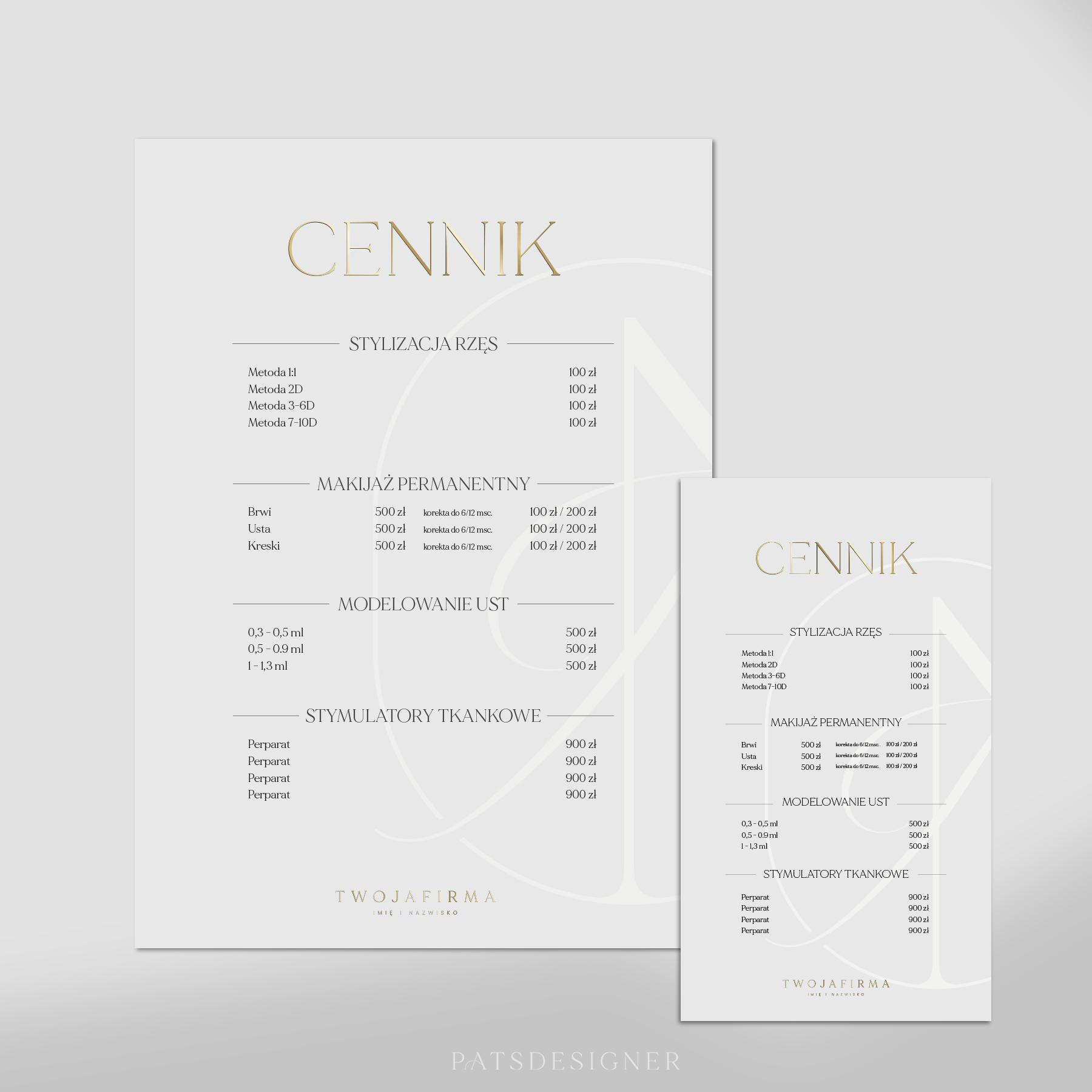 Gotowy projekt cennika do personalizacji Twoim logo i danymi firmy.