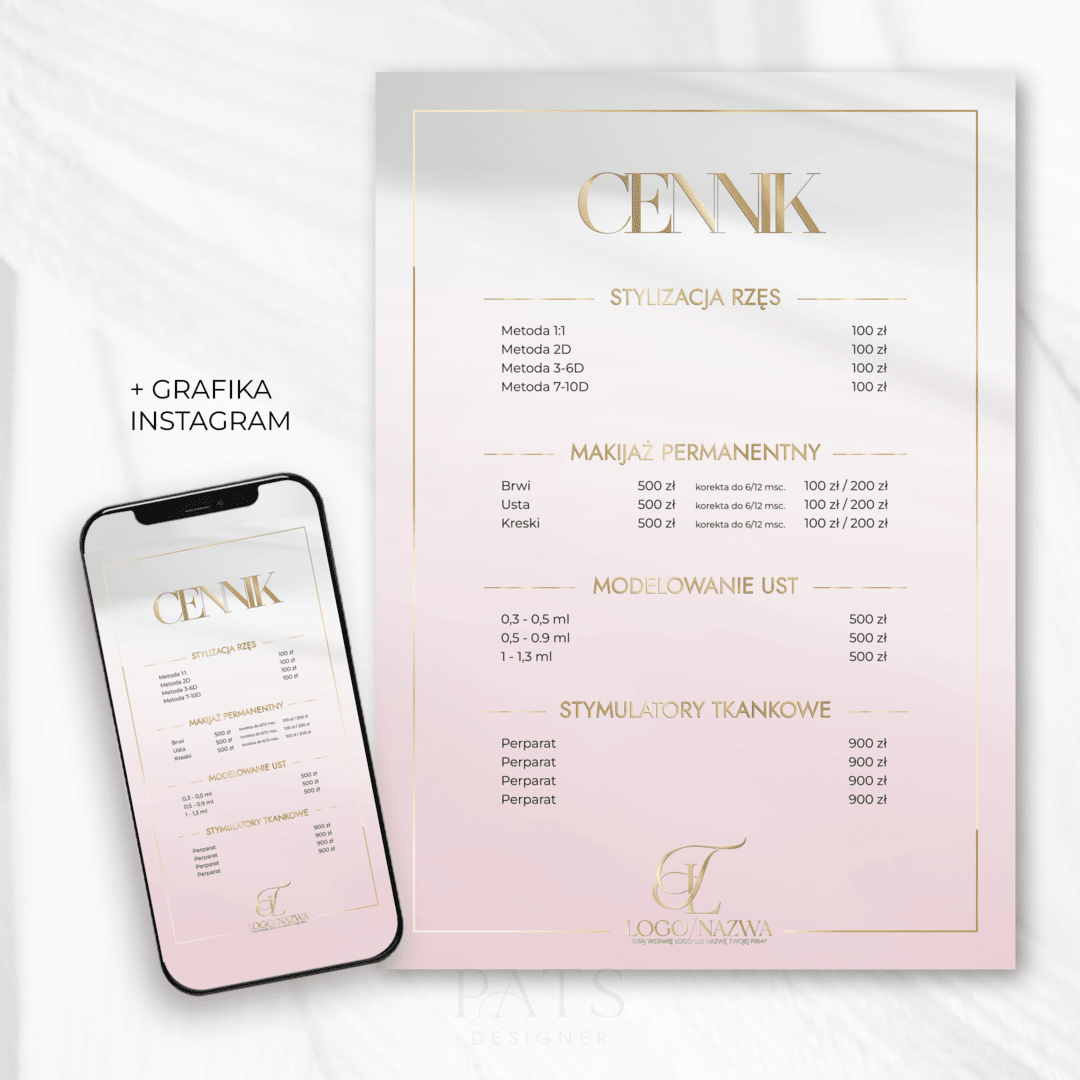 Gotowy projekt cennika do personalizacji Twoim logo i danymi firmy.