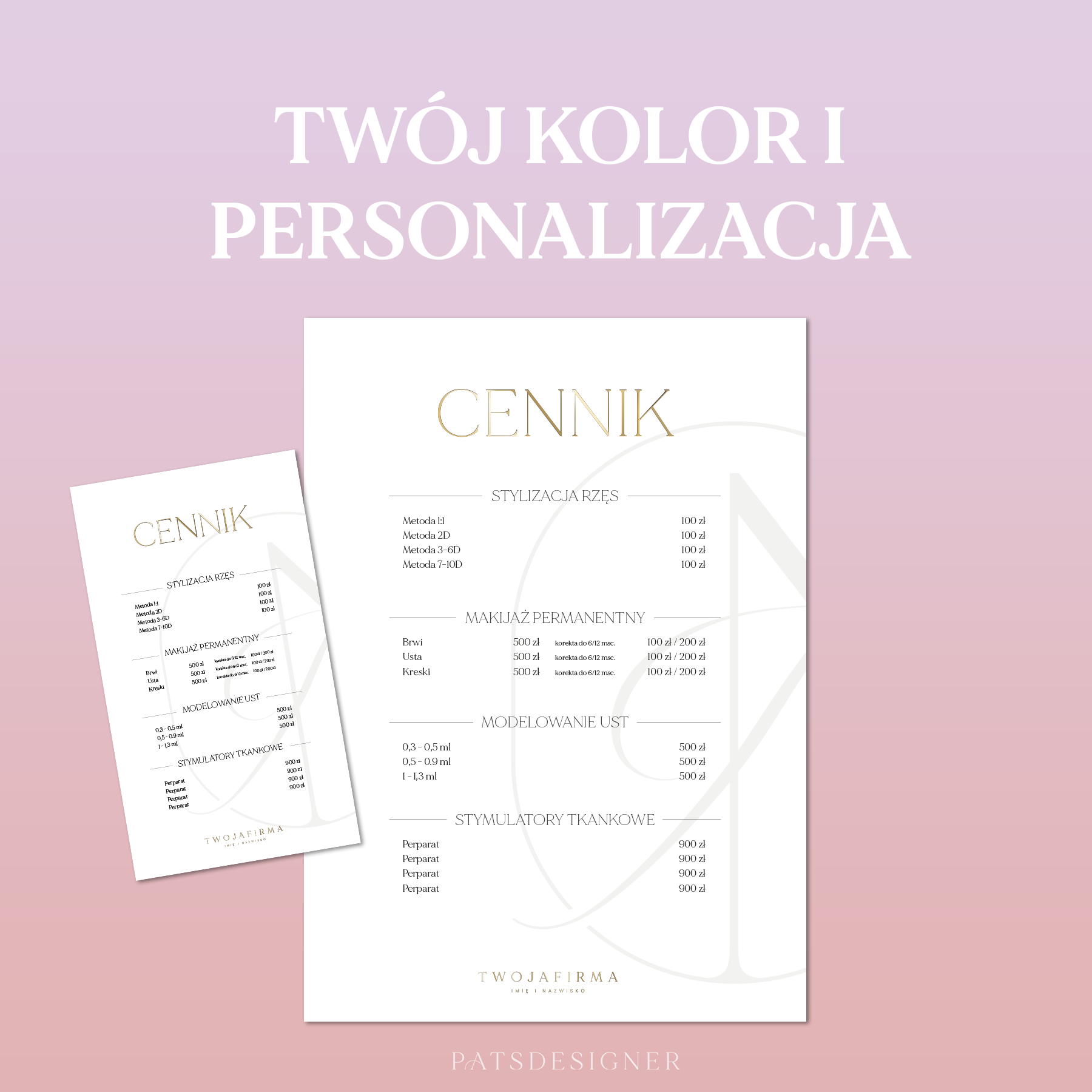 Logo w formacie wektorowym, listę usług lub inne wymagania wyślij na adres e-mail zamowienia@patsdesigner.pl.