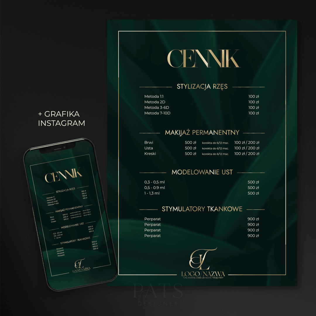 Logo w formacie wektorowym, listę usług lub inne wymagania wyślij na adres e-mail zamowienia@patsdesigner.pl.