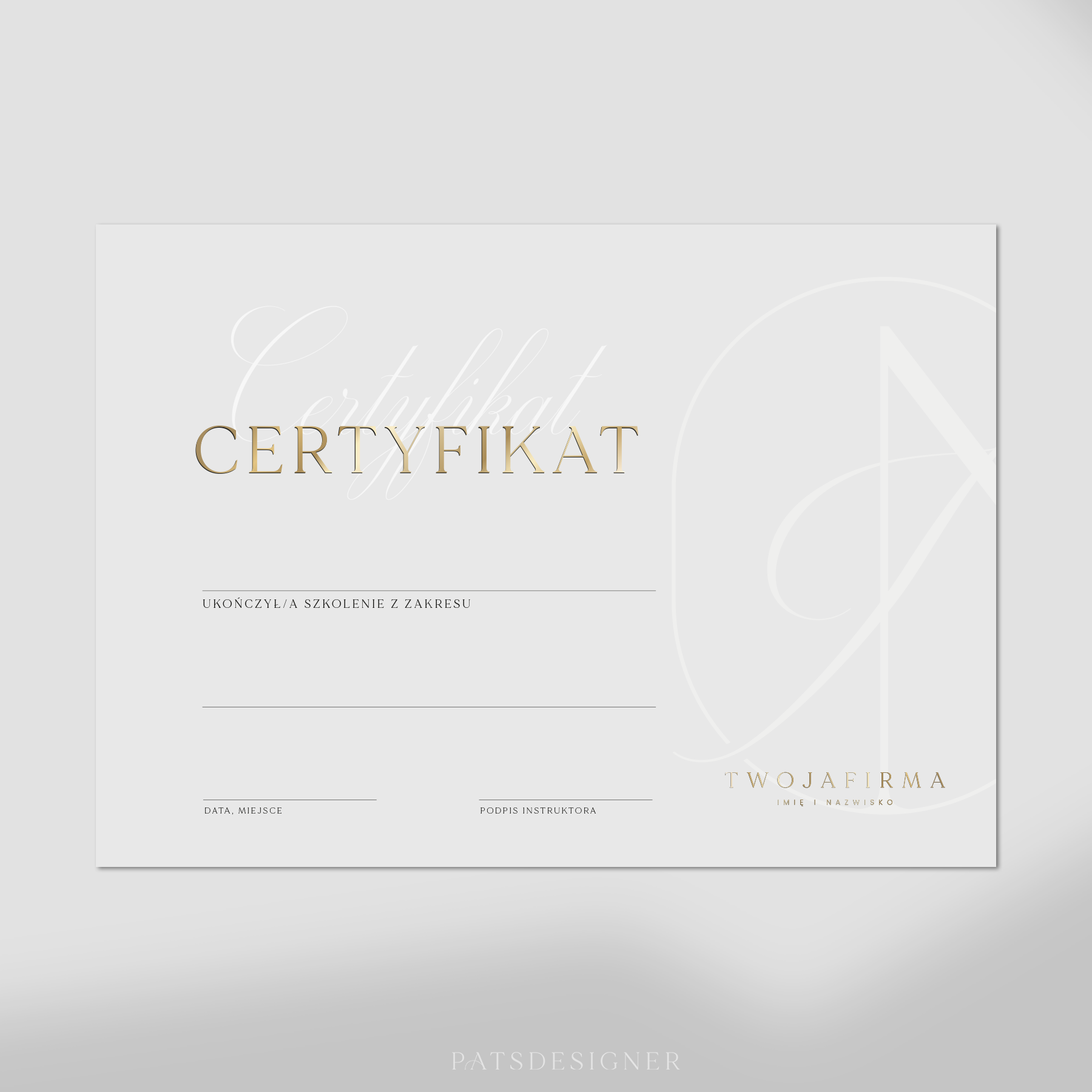 Certyfikat Classy - jasna szarość poziom