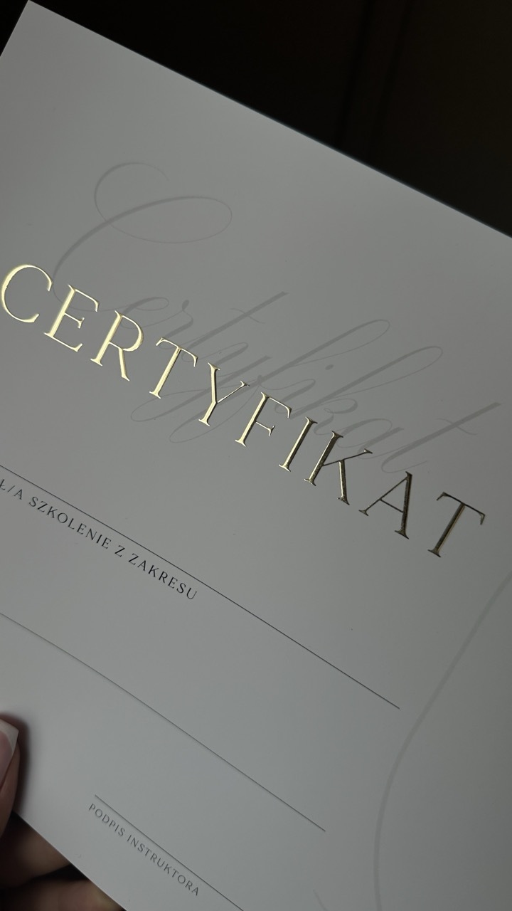 • Dane, które są możliwe do naniesienia to konkretna nazwa szkolenia. (W cenie są 2 warianty nazw szkoleń).