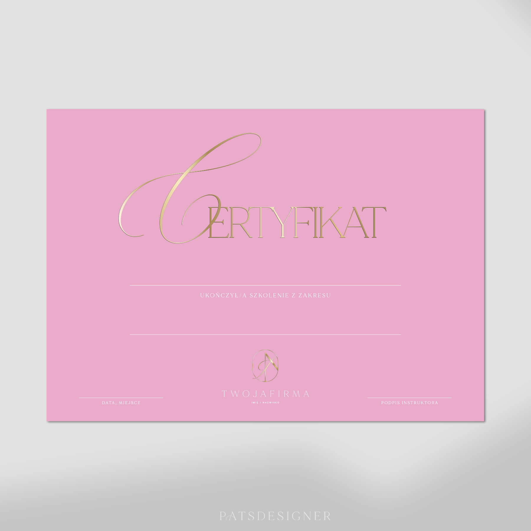 • Dane, które są możliwe do naniesienia to konkretna nazwa szkolenia. (W cenie są 2 warianty nazw szkoleń).