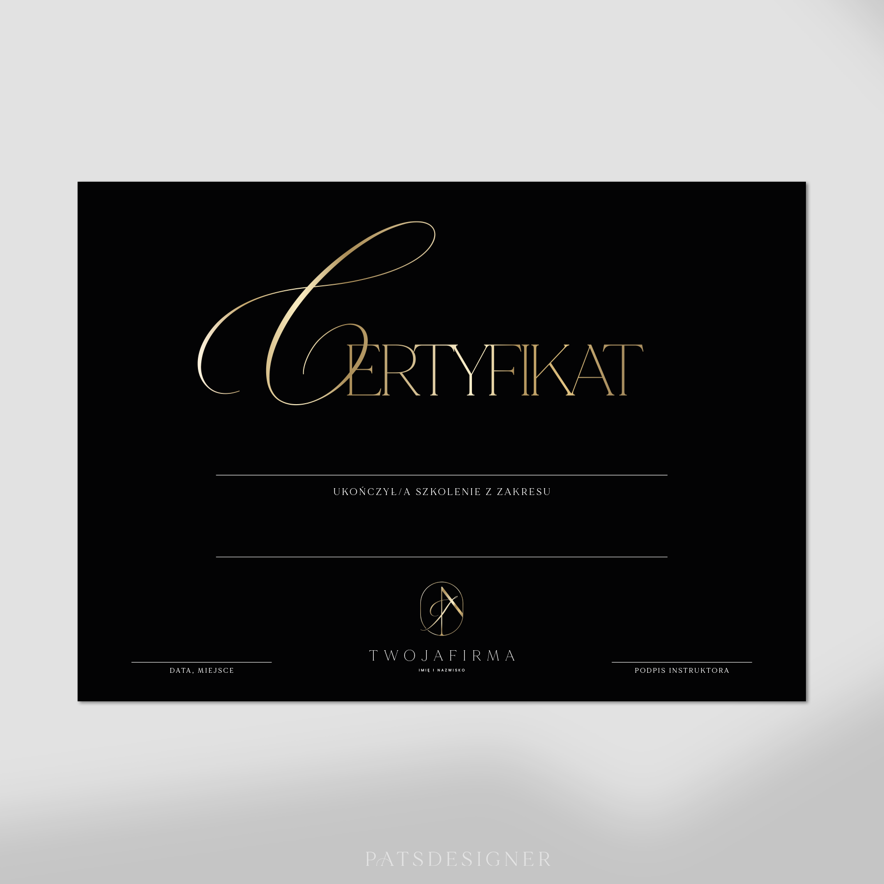 • Dane, które są możliwe do naniesienia to konkretna nazwa szkolenia. (W cenie są 2 warianty nazw szkoleń).
