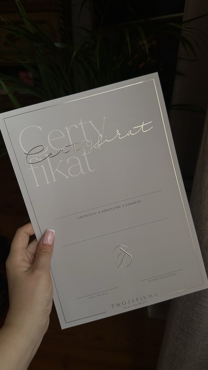 Dane, które są możliwe do naniesienia to konkretna nazwa szkolenia. (W cenie są 2 warianty nazw szkoleń).