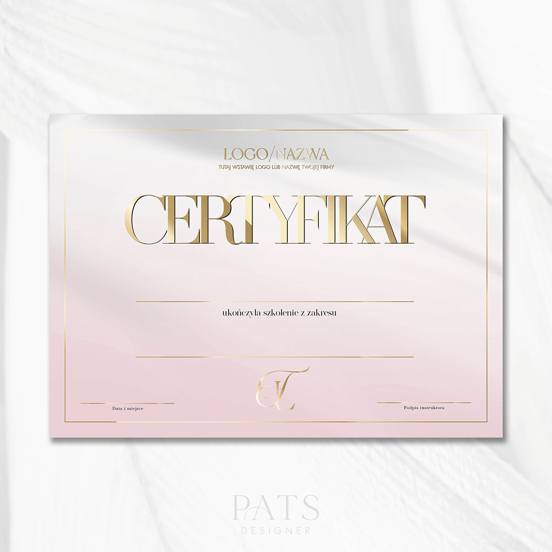 Certyfikat poziomy drukowany font - pudrowy róż satyna