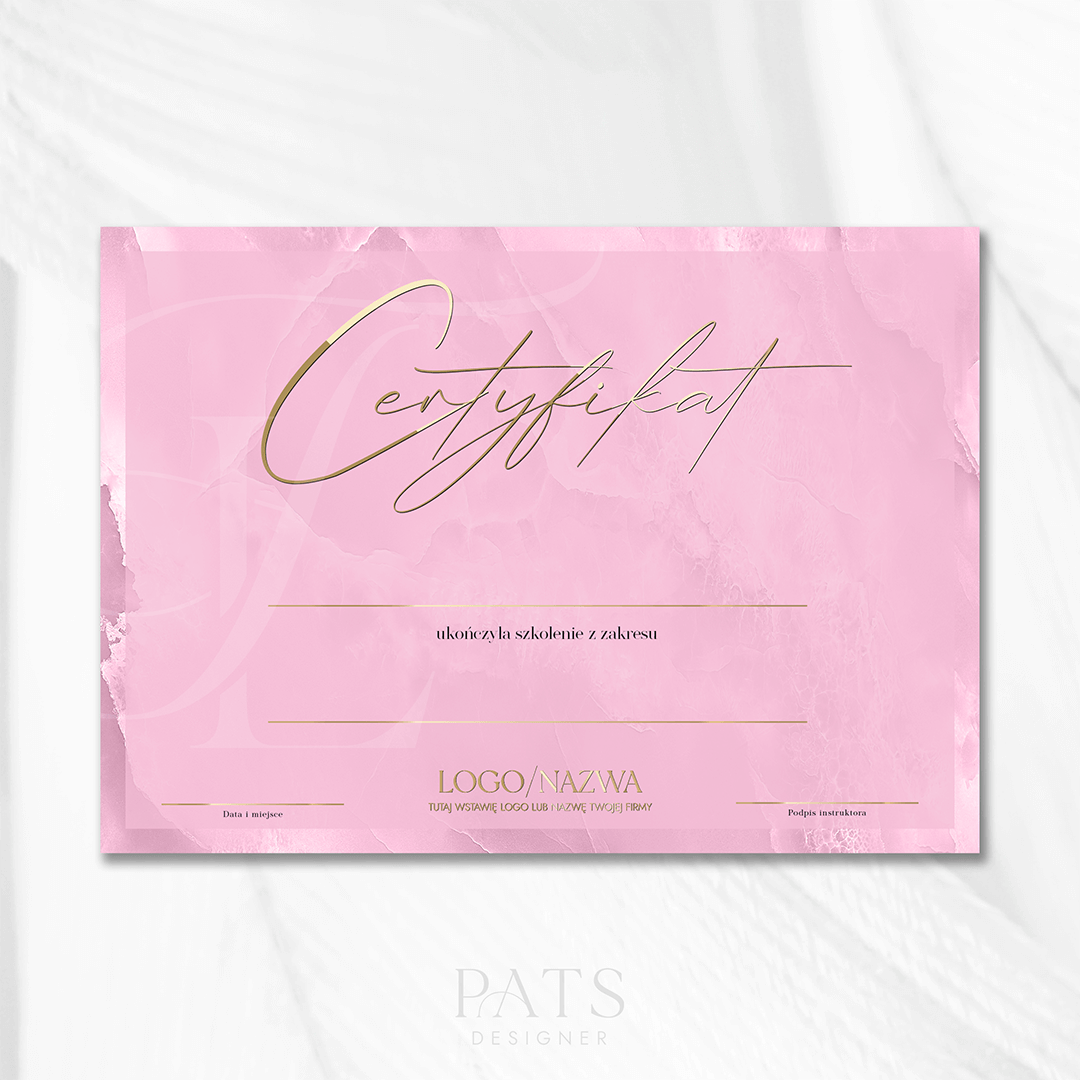 Certyfikat poziomy odręczny font - cukierkowy róż marmur