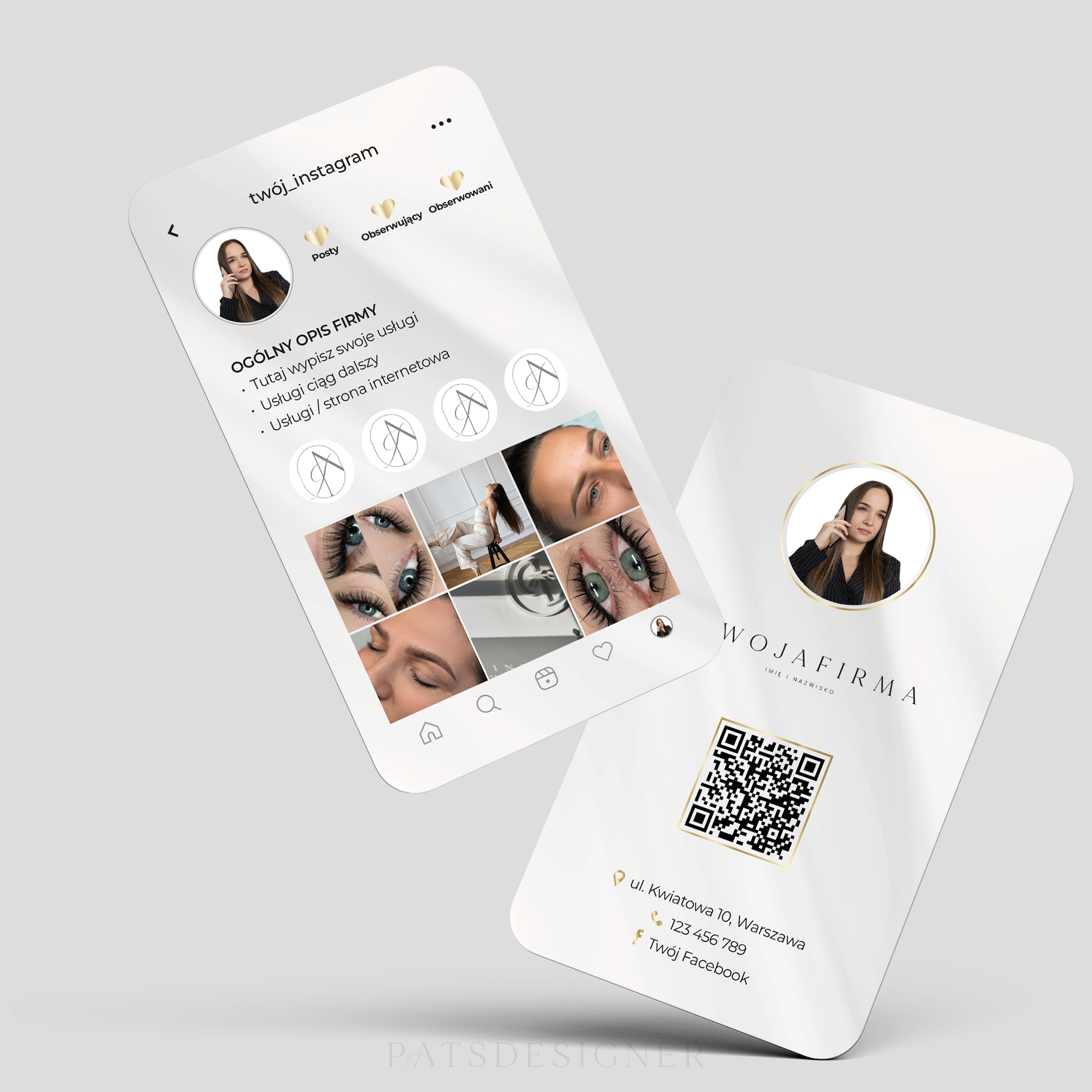 Gotowy projekt do personalizacji Twoim logo, danymi firmy, kodem QR i zdjęciami.