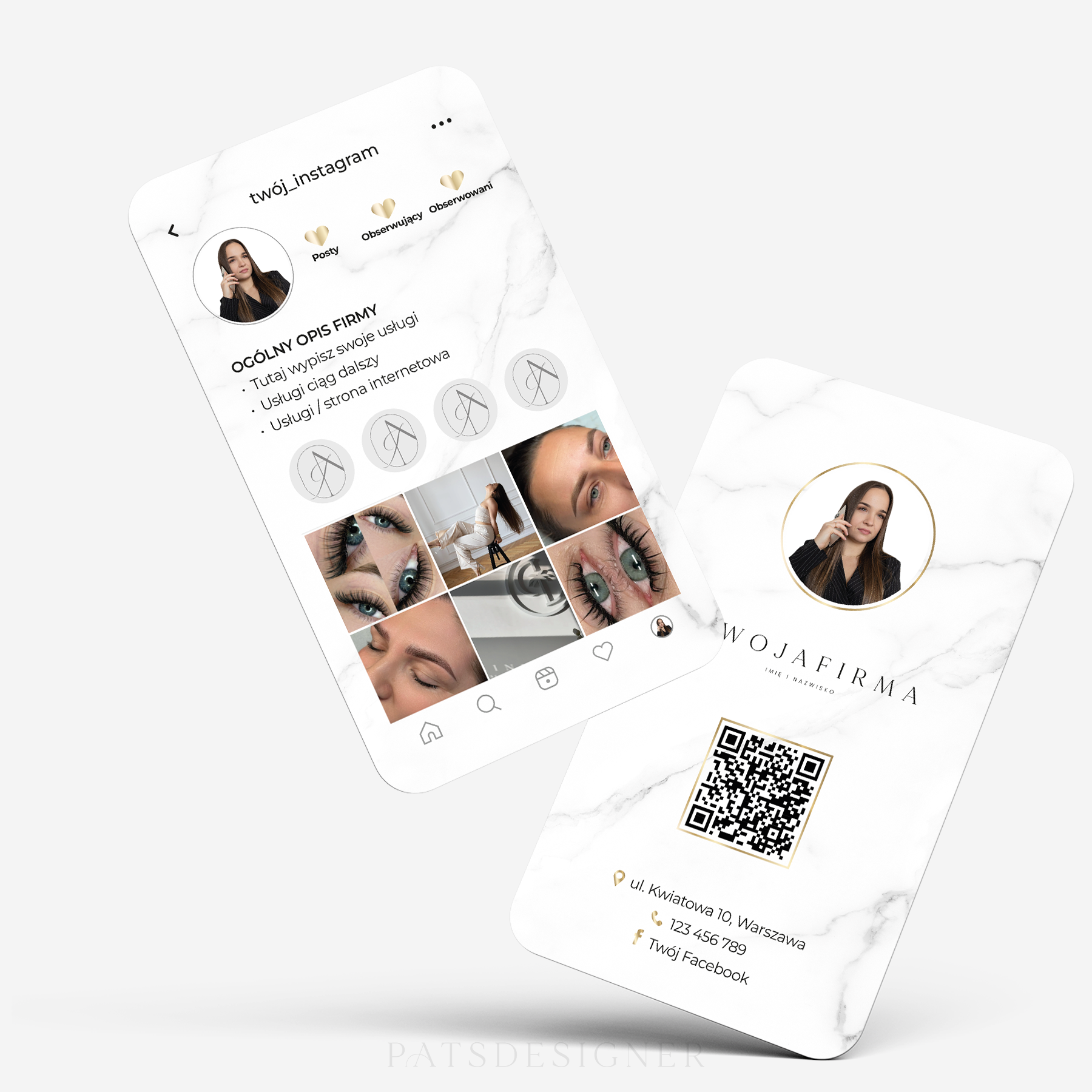 Gotowy projekt do personalizacji Twoim logo, danymi firmy, kodem QR i zdjęciami.