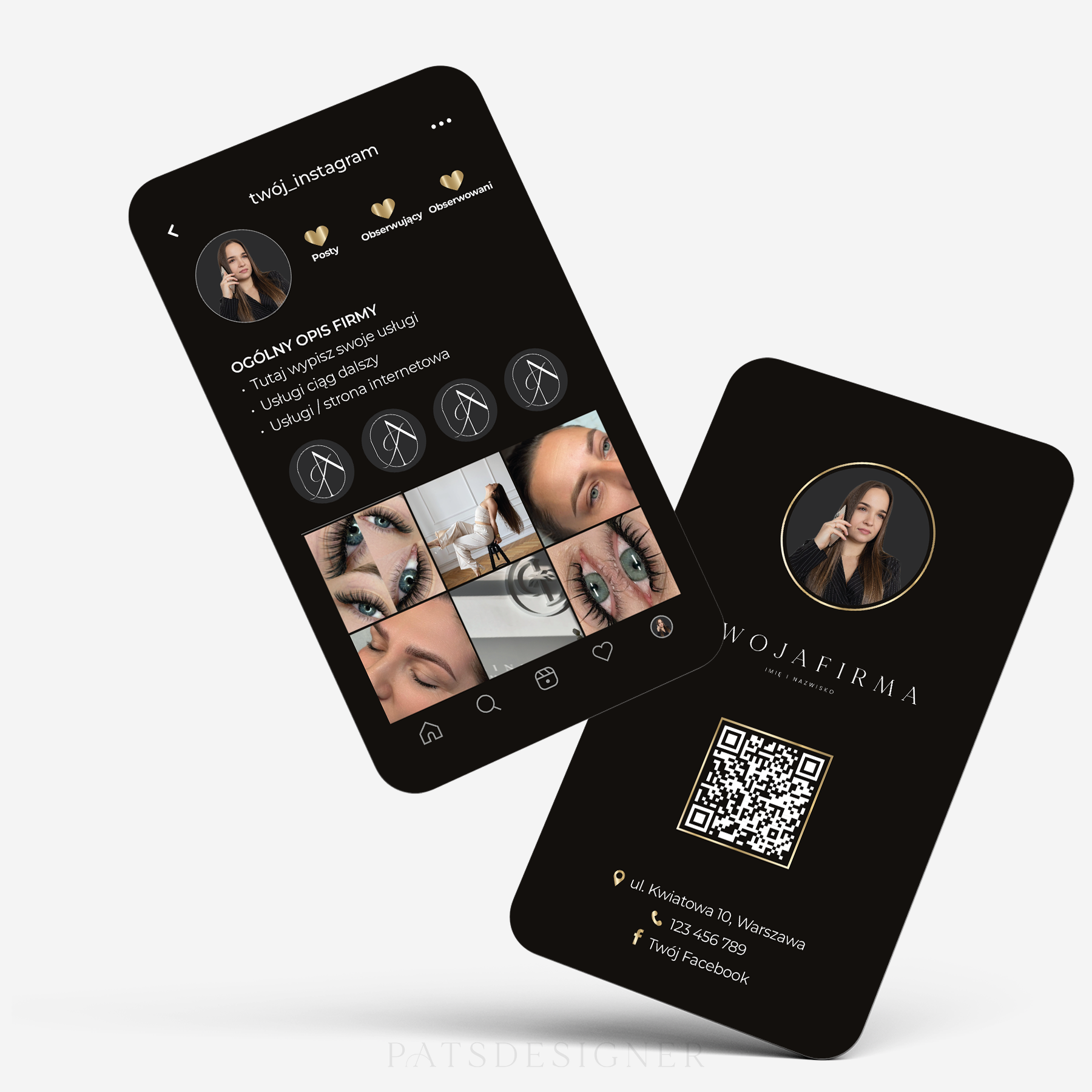 Gotowy projekt do personalizacji Twoim logo, danymi firmy, kodem QR i zdjęciami.