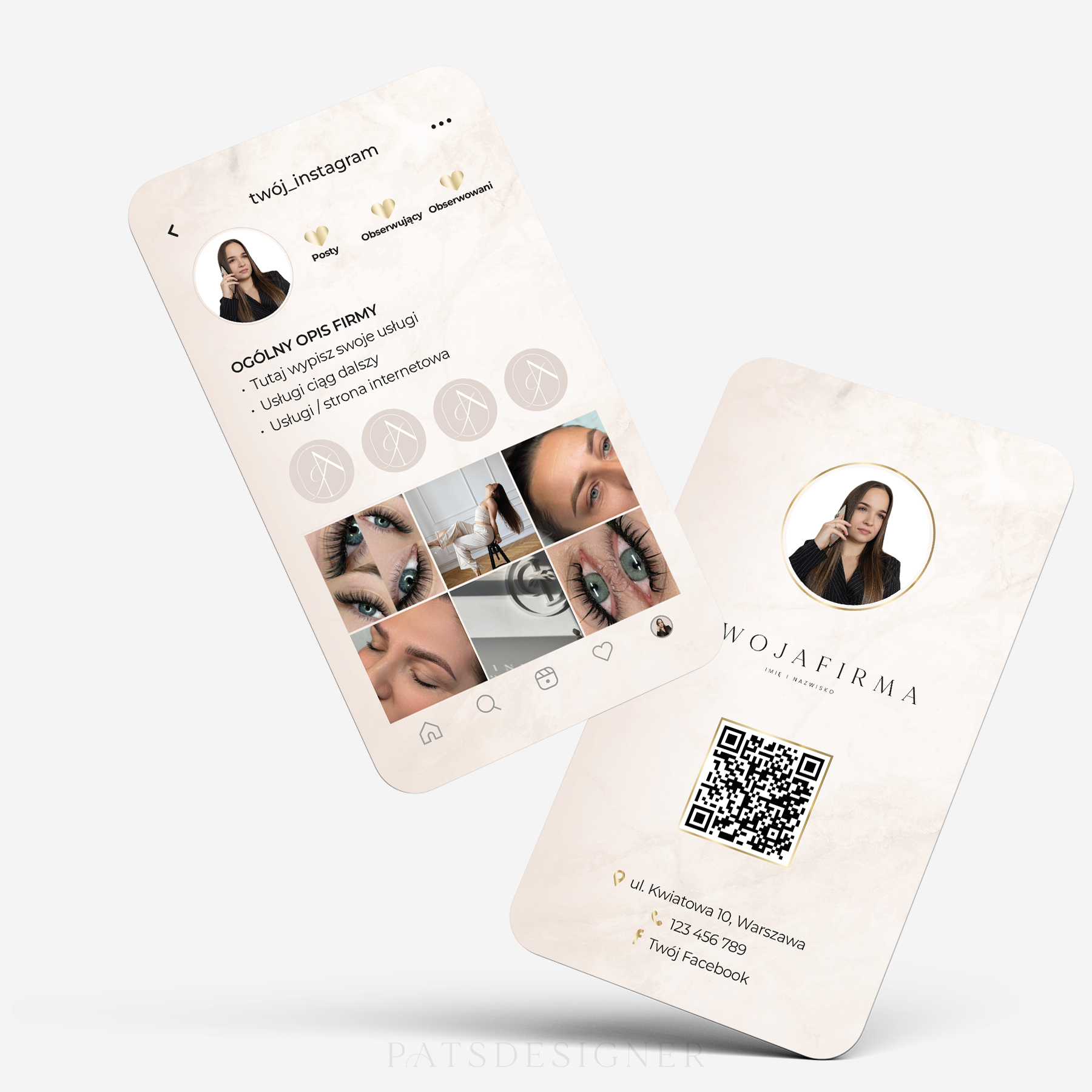 Gotowy projekt do personalizacji Twoim logo, danymi firmy, kodem QR i zdjęciami.