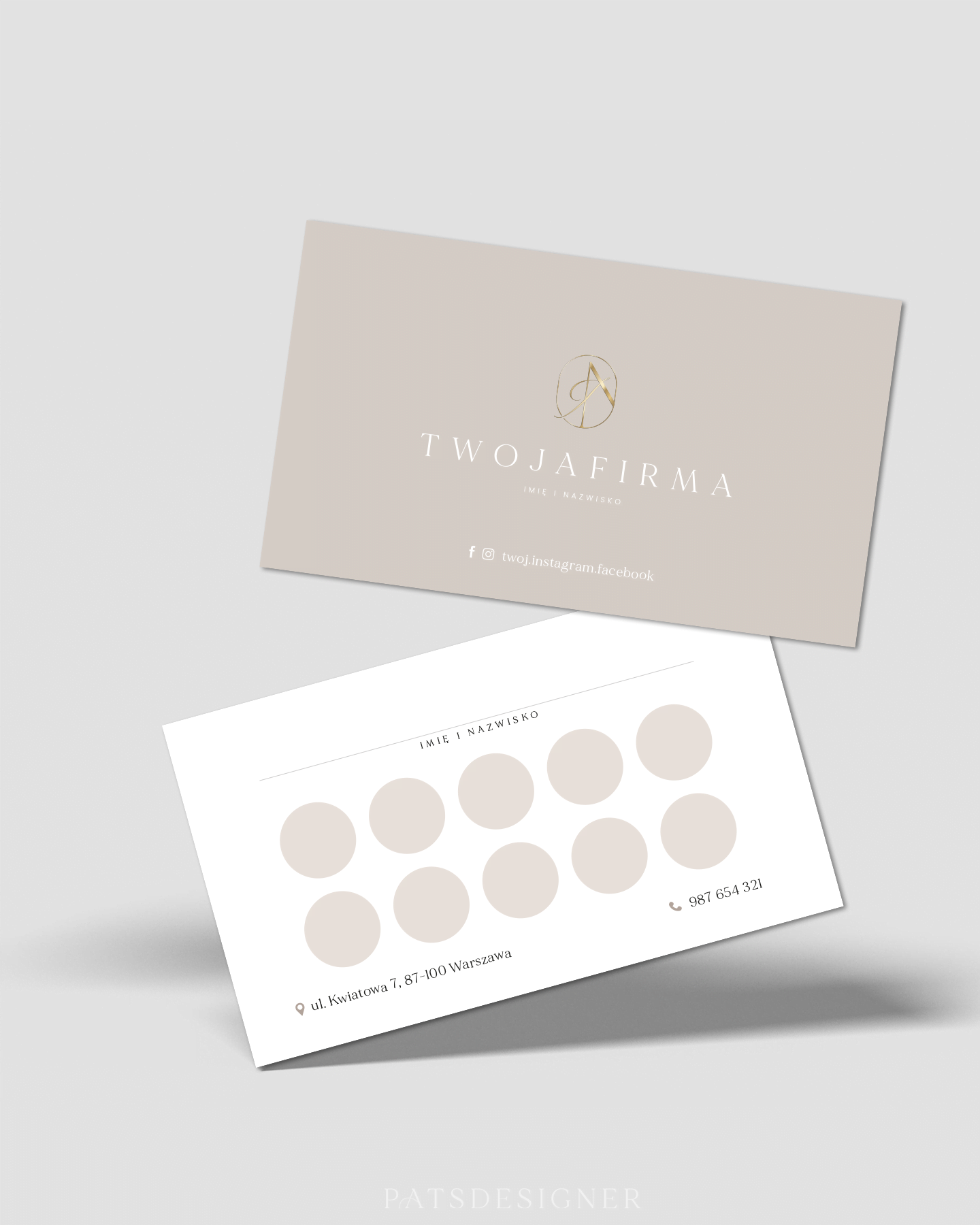 Łączona wizytówka i karta stałego klienta - beż zgaszony poziom