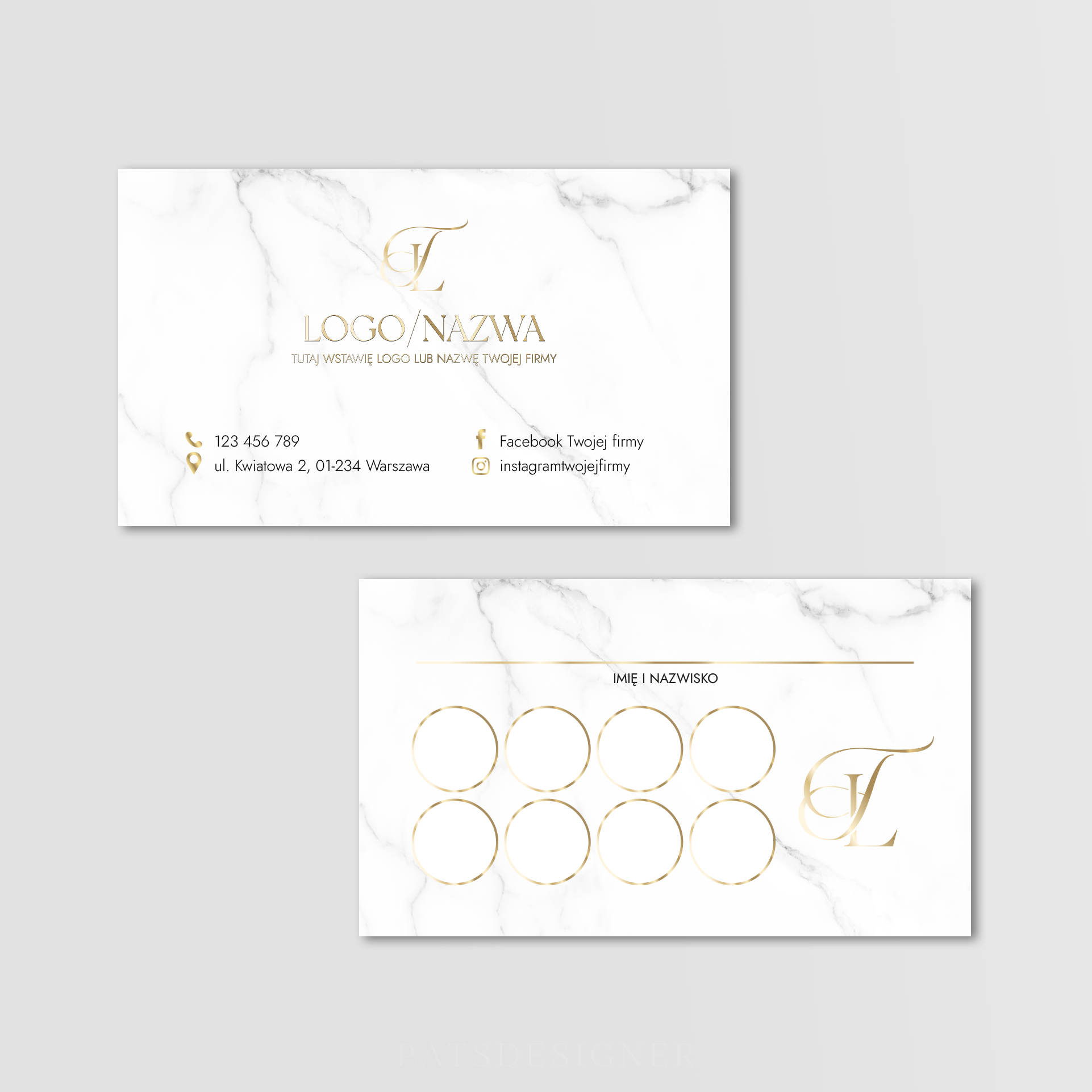 Łączona wizytówka i karta stałego klienta - biały marmur