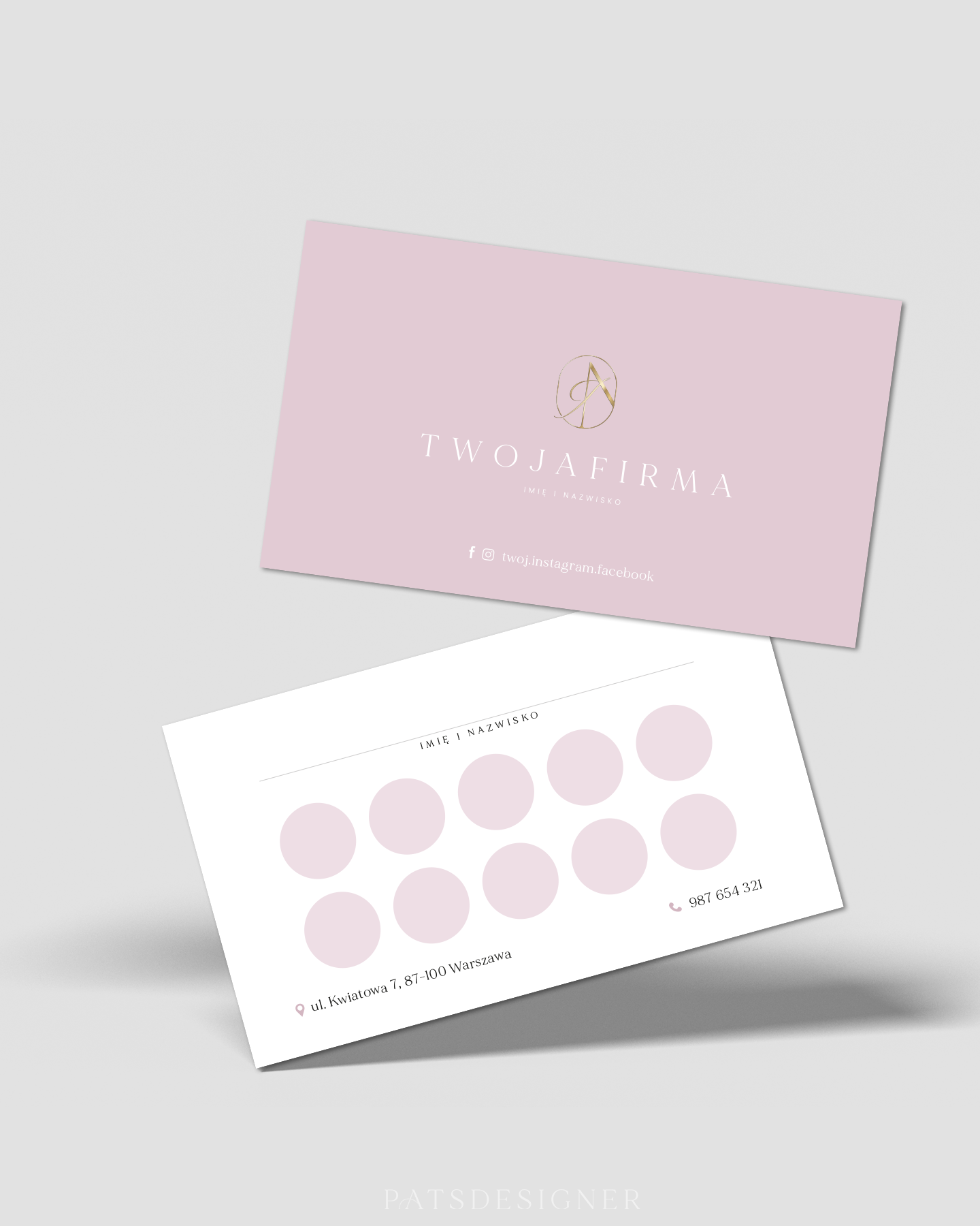 Łączona wizytówka i karta stałego klienta - brudny róż poziom