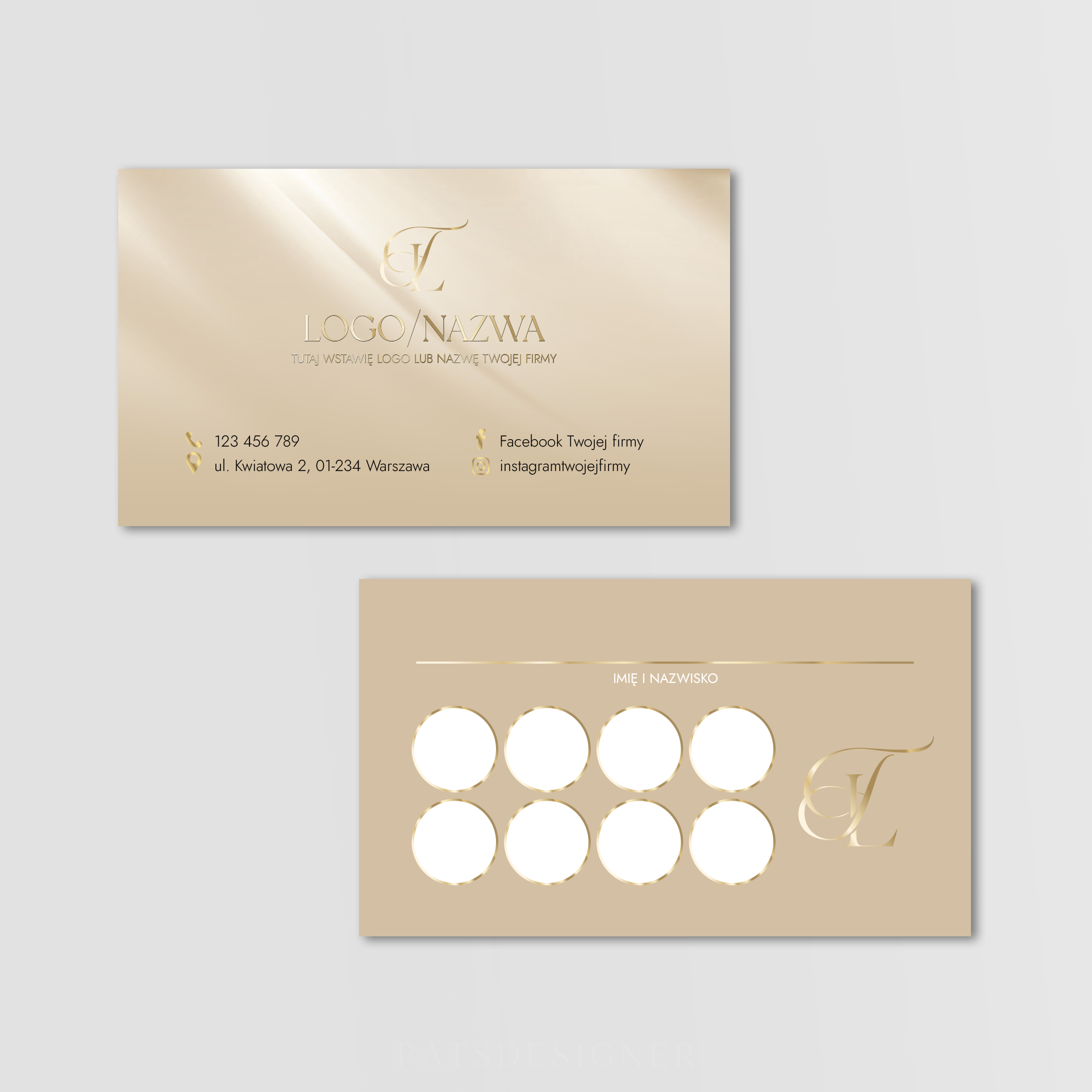 Łączona wizytówka i karta stałego klienta - ciemny beż satyna