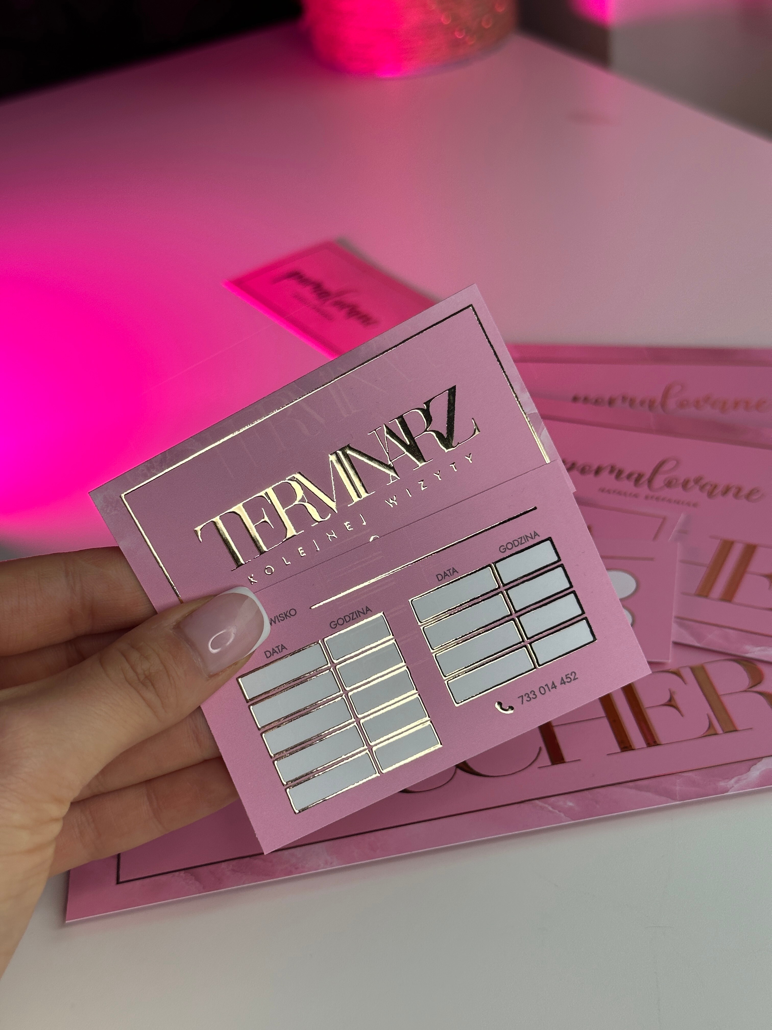 Łączona wizytówka i terminarz - cukierkowy róż marmur