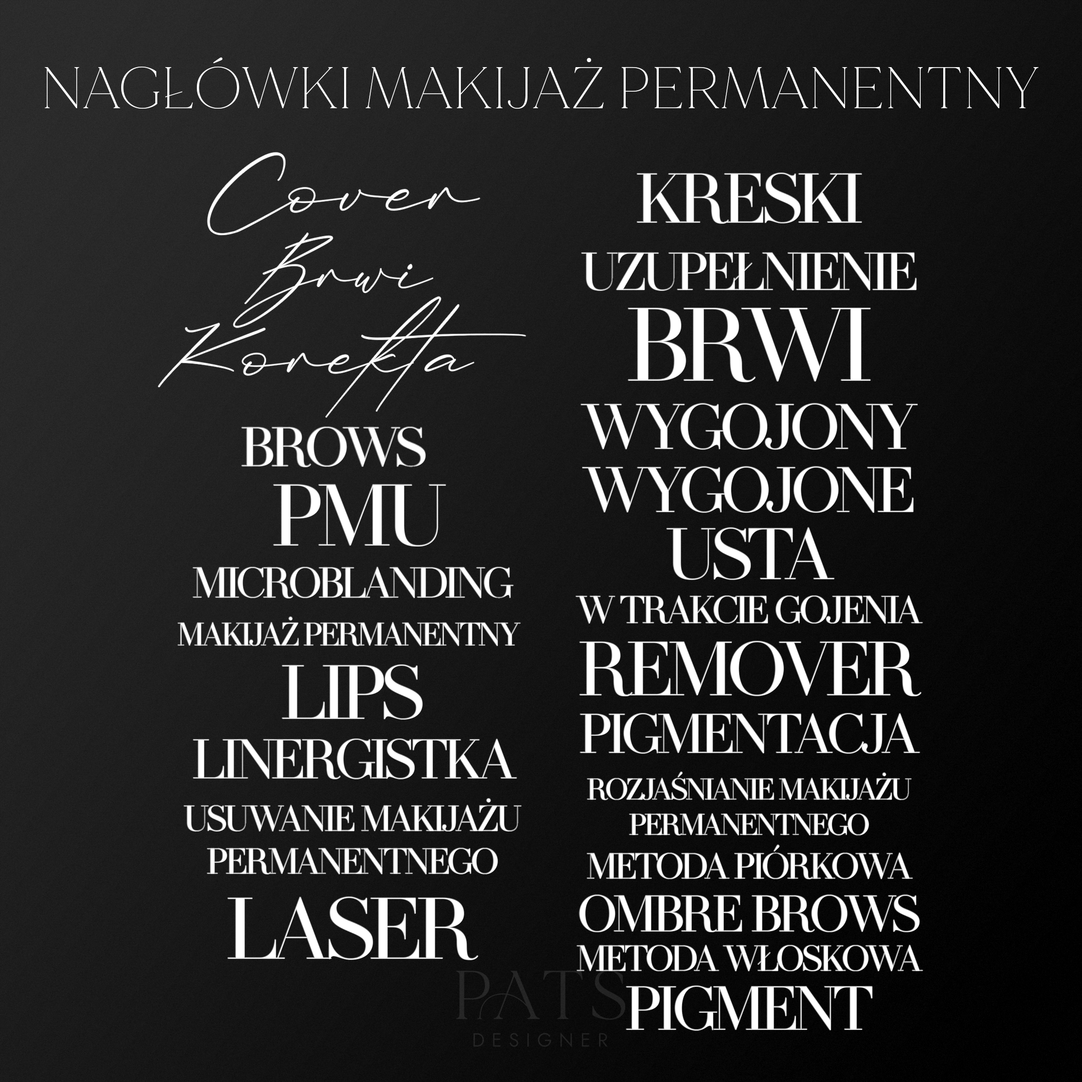 SŁOWA: Pigment Pigmentacja Makijaż permanentny Kreski Brwi Ombre brows Microblading Metoda włoskowa Metoda piórkowa Usta PMU Laser Usuwanie makijażu permanentnego Rozjaśnianie makijażu permanentnego Korekta Uzupełnienie Wygojony Wygojone W trakcie gojenia Cover Remover LIPS BROWS Linergistka