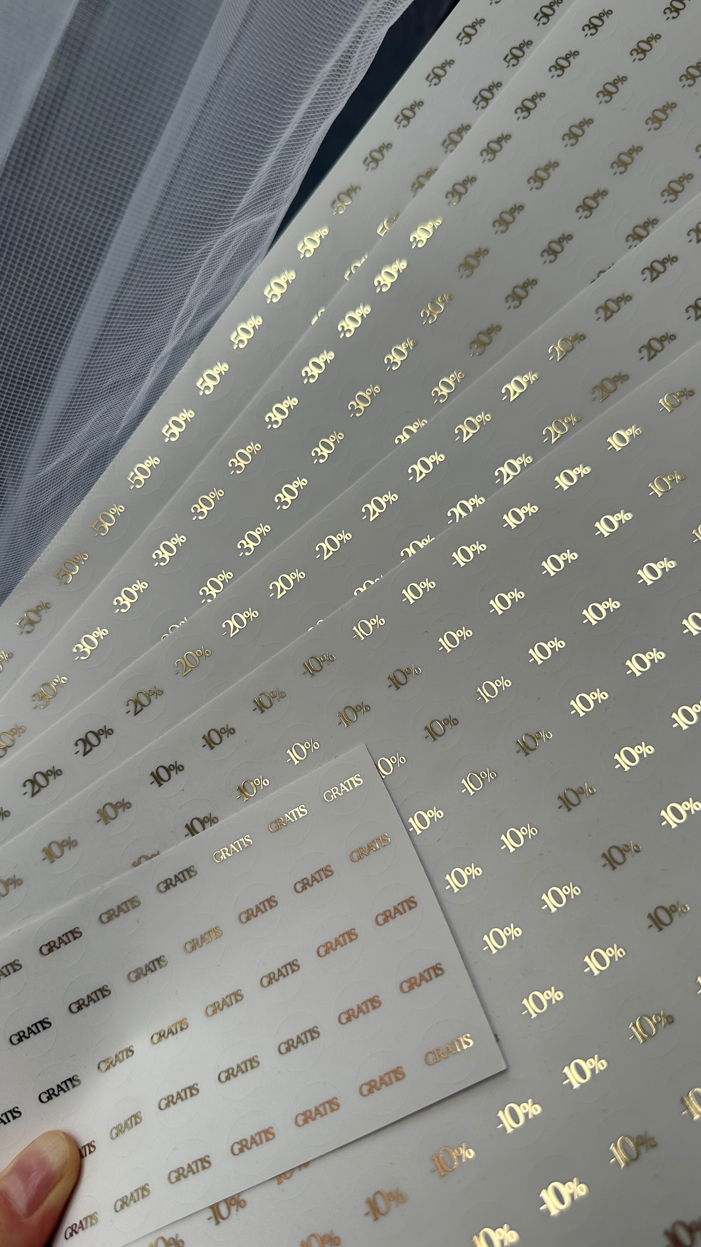 Naklejki rabatowe -10%, -20%, -30%, -50%, GRATIS - 250 sztuk.