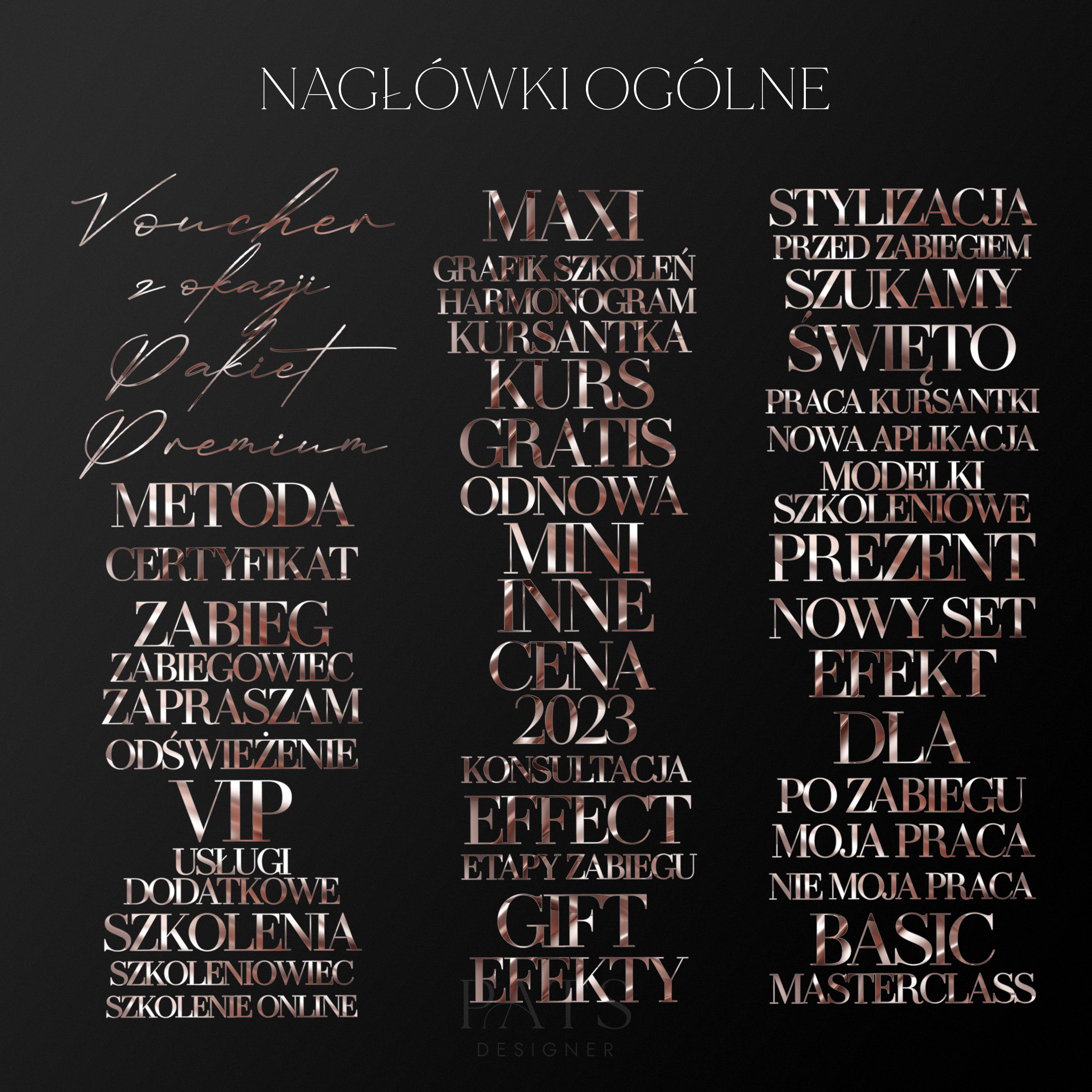 Gotowe projekty nagłówków do wstawienia bezpośrednio na Twoje tła, zdjęcia i grafiki.