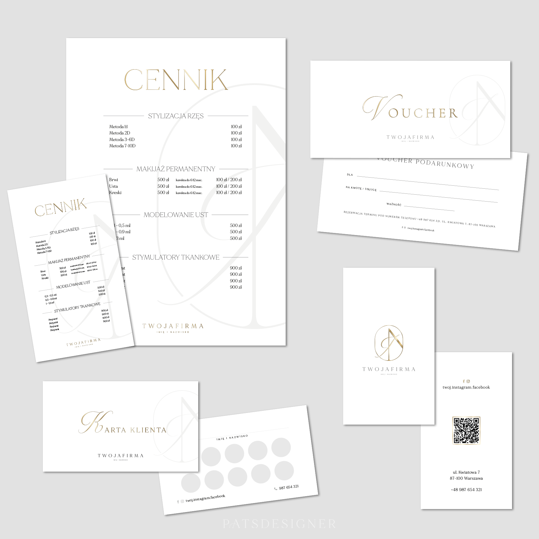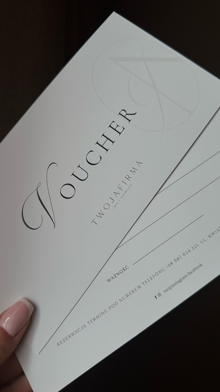 • wszystkie projekty w formacie do druku (.pdf) oraz voucher online i cennik na social media (.png),