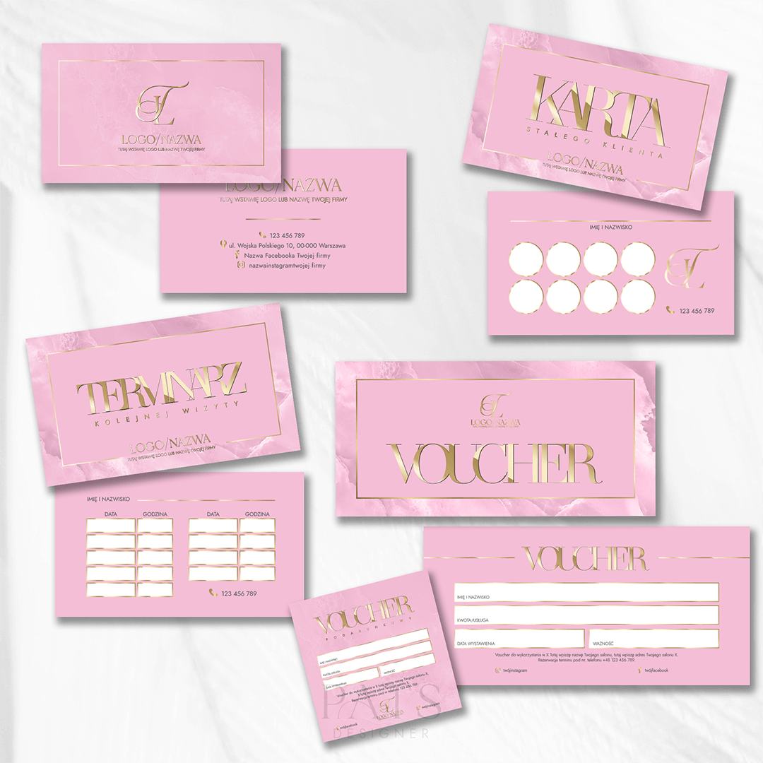 • wszystkie projekty w formacie do druku (.pdf) oraz voucher online i cennik na social media (.png),