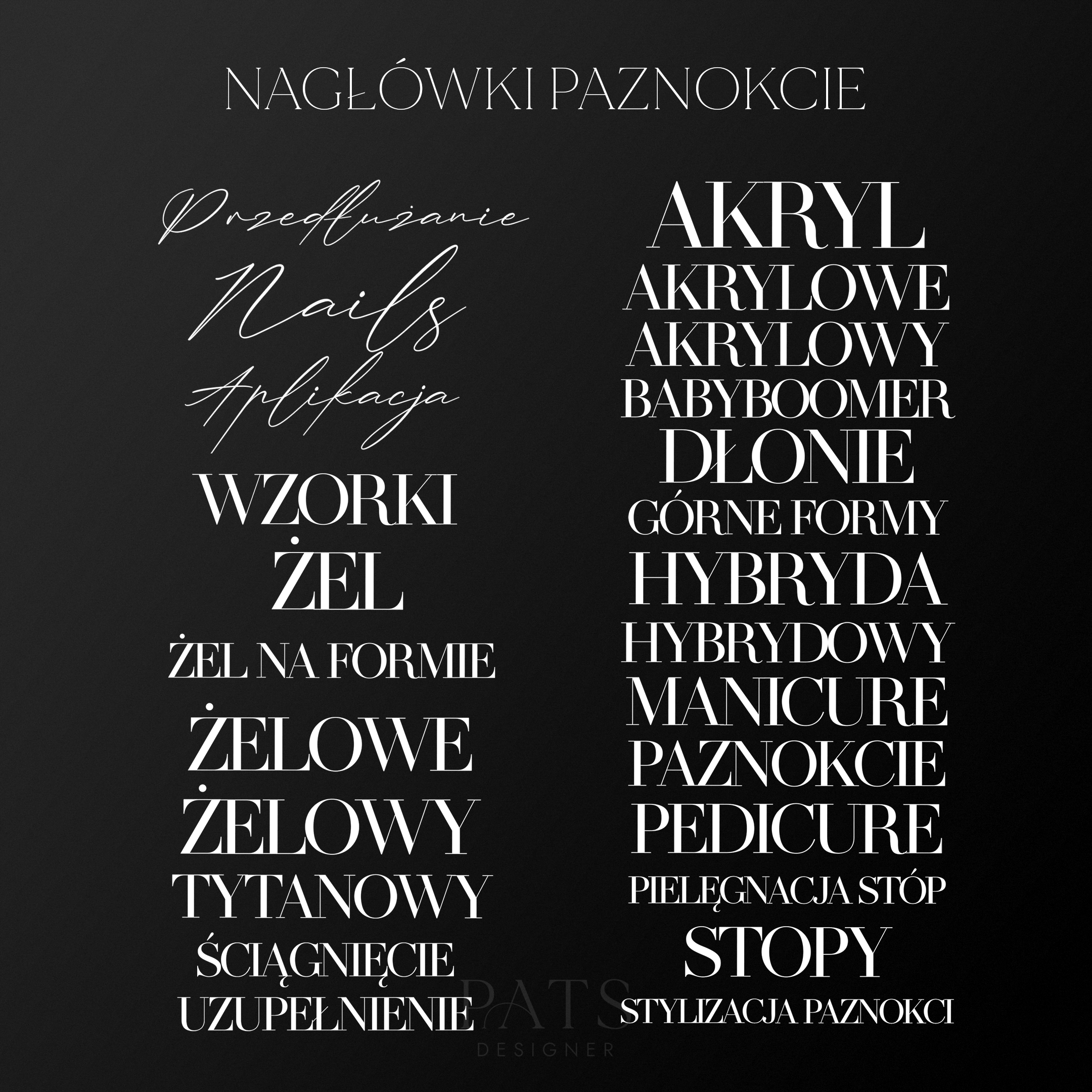 SŁOWA: Stylizacja paznokci NAILS Paznokcie Manicure Pedicure Pielęgnacja stóp Stopy Dłonie Żel Przedłużanie Formy Żel na formie Babyboomer Hybryda Żelowe Akrylowe Wzorki Uzupełnienie Ściągnięcie Hybrydowy Żelowy Akrylowy Akryl Tytanowy Górne formy Aplikacja