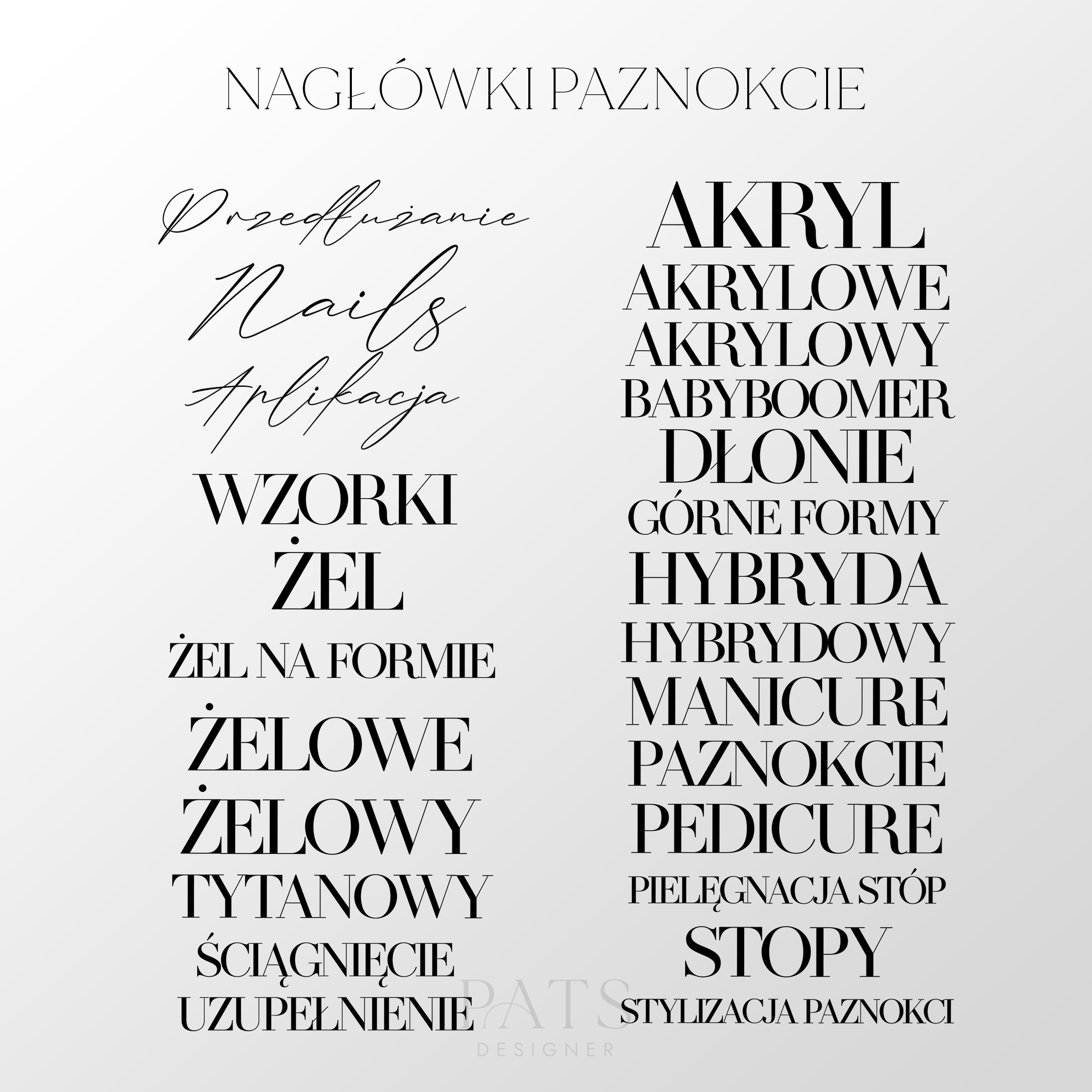 SŁOWA: Stylizacja paznokci NAILS Paznokcie Manicure Pedicure Pielęgnacja stóp Stopy Dłonie Żel Przedłużanie Formy Żel na formie Babyboomer Hybryda Żelowe Akrylowe Wzorki Uzupełnienie Ściągnięcie Hybrydowy Żelowy Akrylowy Akryl Tytanowy Górne formy Aplikacja