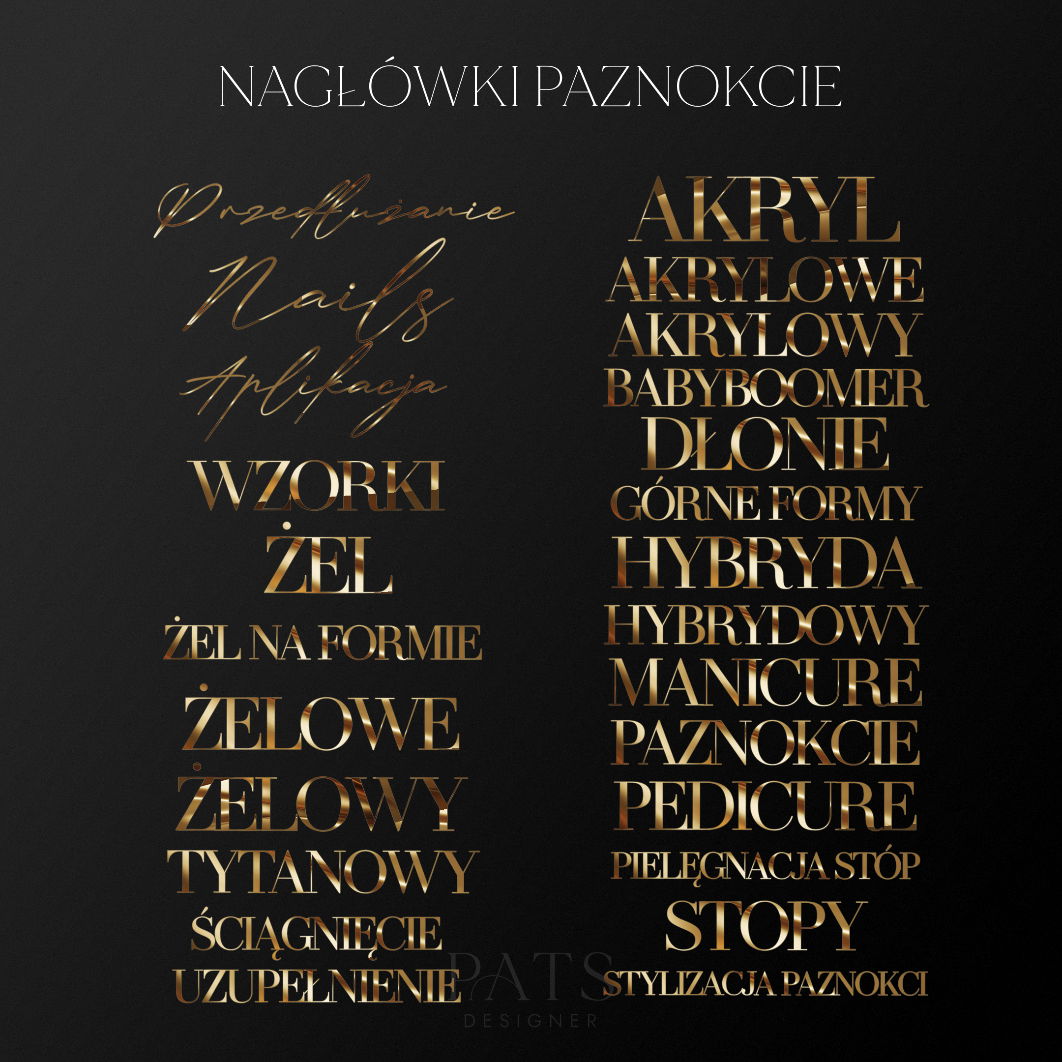 SŁOWA: Stylizacja paznokci NAILS Paznokcie Manicure Pedicure Pielęgnacja stóp Stopy Dłonie Żel Przedłużanie Formy Żel na formie Babyboomer Hybryda Żelowe Akrylowe Wzorki Uzupełnienie Ściągnięcie Hybrydowy Żelowy Akrylowy Akryl Tytanowy Górne formy Aplikacja