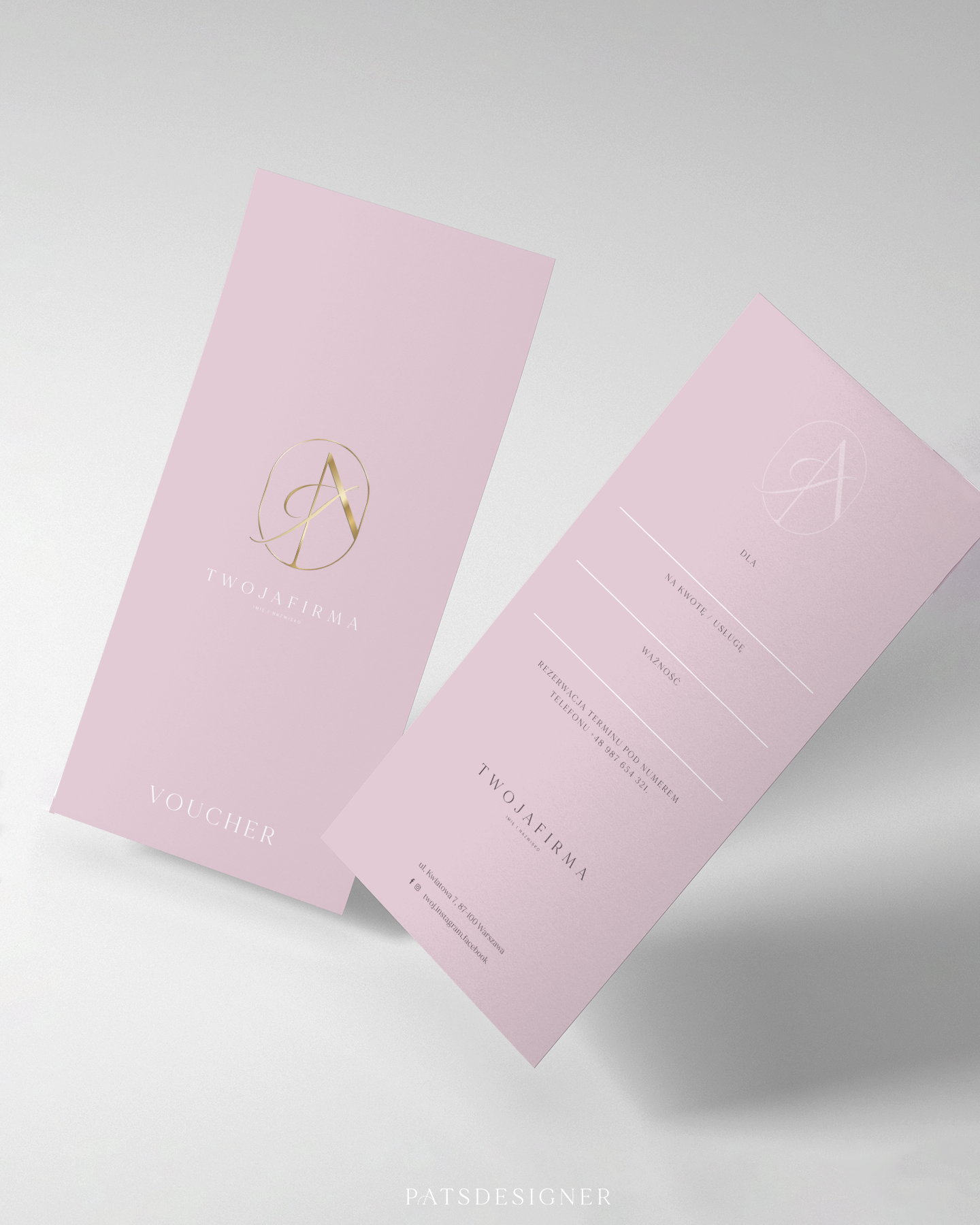 Voucher wzór 1 - pudrowy róż pion