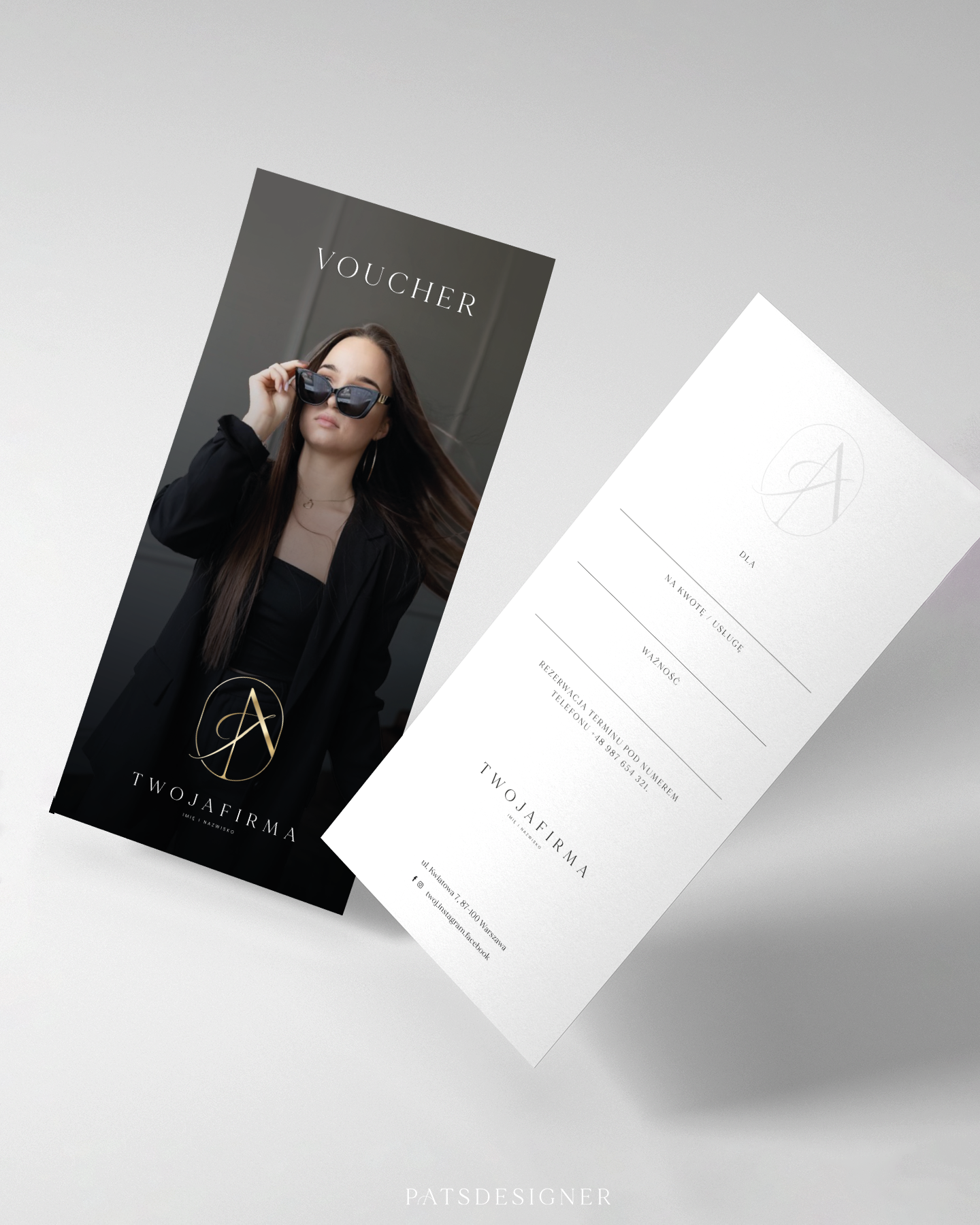 Logo w formacie wektorowym, zdjęcie w dużej rozdzielczości (200-300+ PPI), określenie kolorystyki w jakiej voucher ma być wykonany oraz dane do umieszczenia w projekcie lub inne wymagania wyślij na adres e-mail zamowienia@patsdesigner.pl.