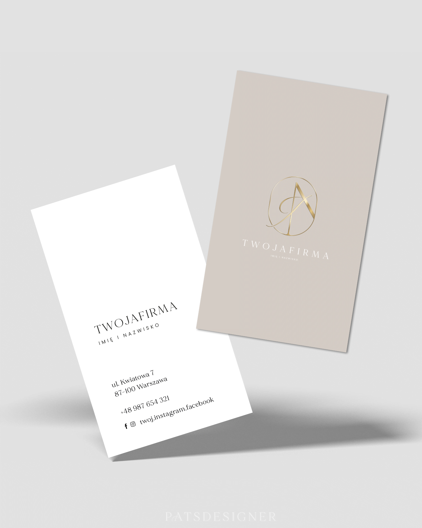Wizytówka - zgaszony beż pion